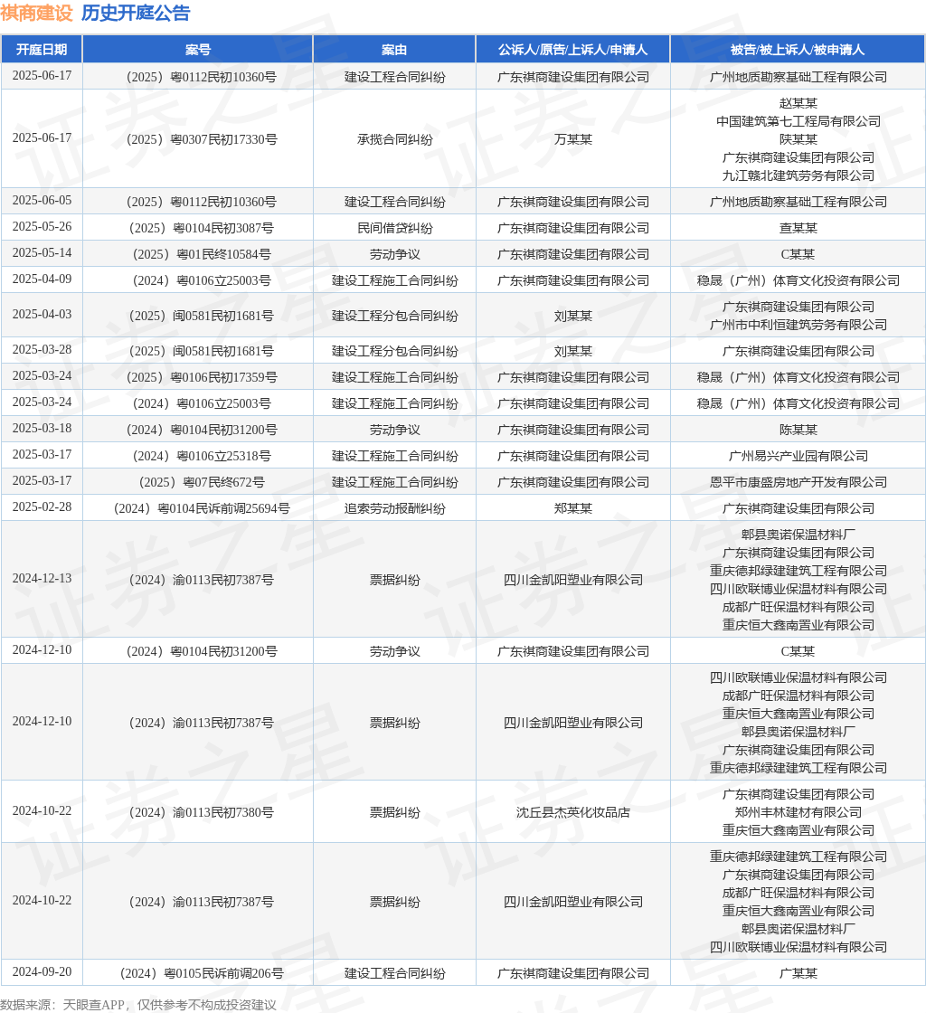 本站消息,根据天眼查APP显示,近日公布了一则广东祺商建设集团有限公司作为原告/上诉人的开庭公告,详细内容如下:
